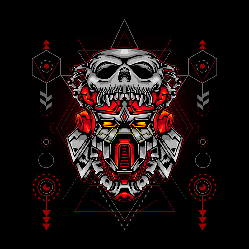 这款未来科技风格的裁片印花服装印花,采用独特的骷髅与机械元素结合设计,展现出强烈的科幻感和视觉冲击力。适用于街头潮流、音乐节等时尚场合,让你在人群中脱颖而出。