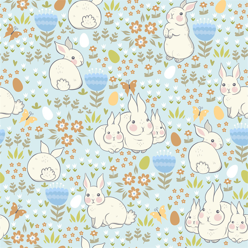 这款春季面料印花以可爱的兔子和多彩的花朵为主题,营造出一种温馨而活泼的氛围。适用于制作儿童服装、家居装饰等,增添春日的生机与活力。
