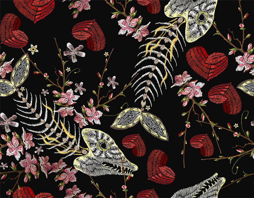 POP花型网 » 优雅花卉与蝴蝶图案服装印花面料设计