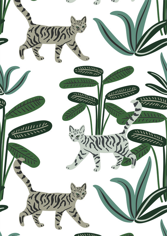 POP花型网 » 热带风情小老虎服装印花面料设计推荐
