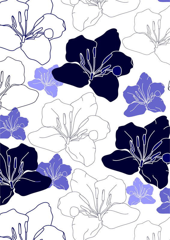 POP花型网 » 时尚花卉面料印花设计:优雅蓝紫色服装印花