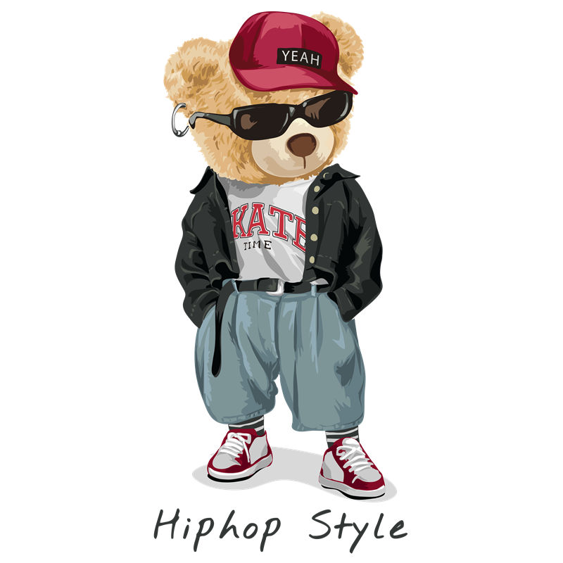 这款裁片印花服装采用嘻哈风格设计,适合街头潮流爱好者。图案中小熊穿着酷炫的黑色夹克、红色帽子和经典红白运动鞋,展现出独特的街头风格。无论是日常穿着还是参加派对,这款服装印花都能让您成为焦点。