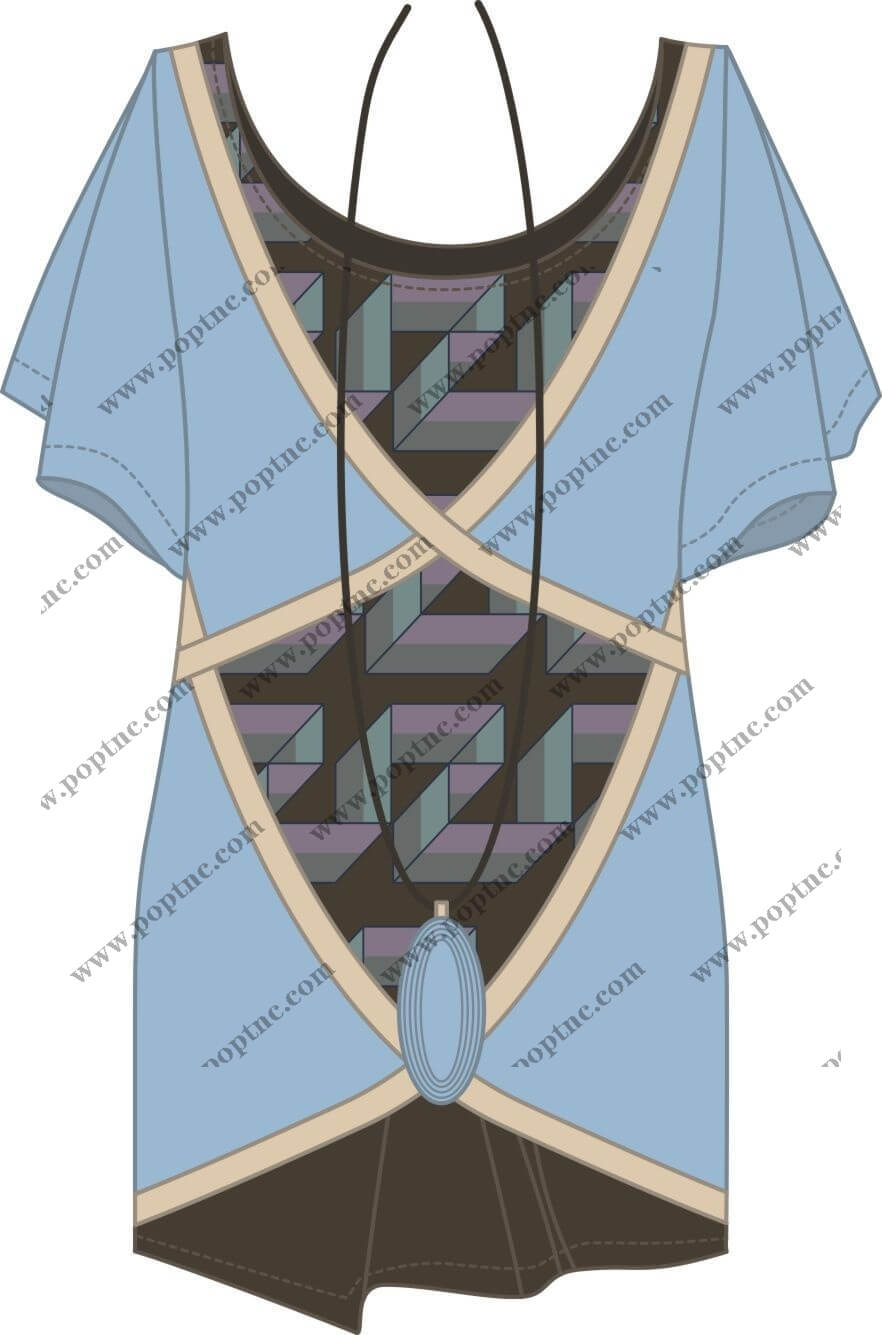 POP花型网 » 长款短袖女装设计矢量图服装设计手稿