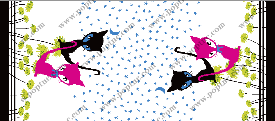 POP花型网 » 狐狸动物印花矢量图五角星花型纺织面料水印数码印花金昌花型