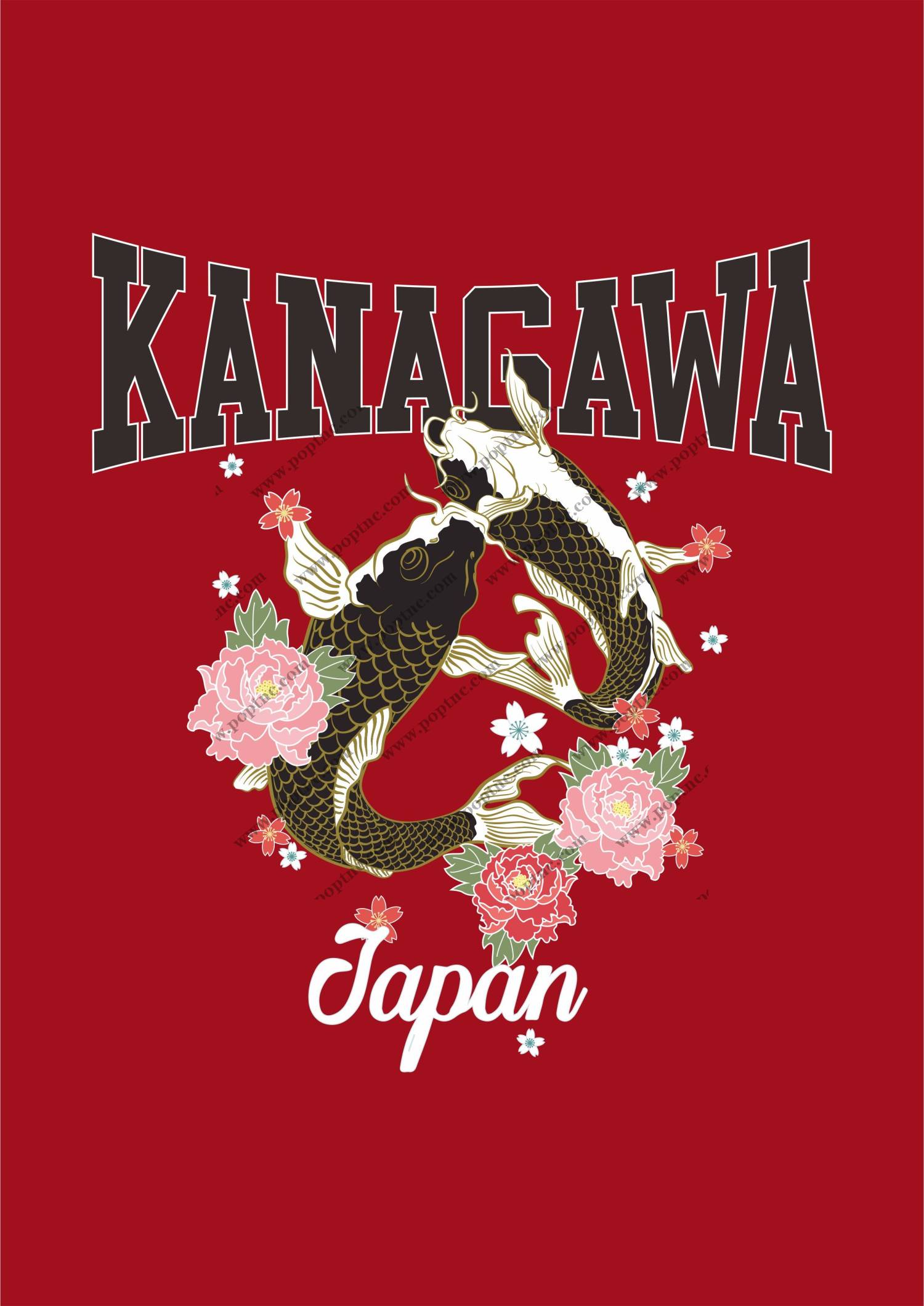 POP花型网 » 字母鲤鱼牡丹花拼接矢量图裁片烫图印花花型