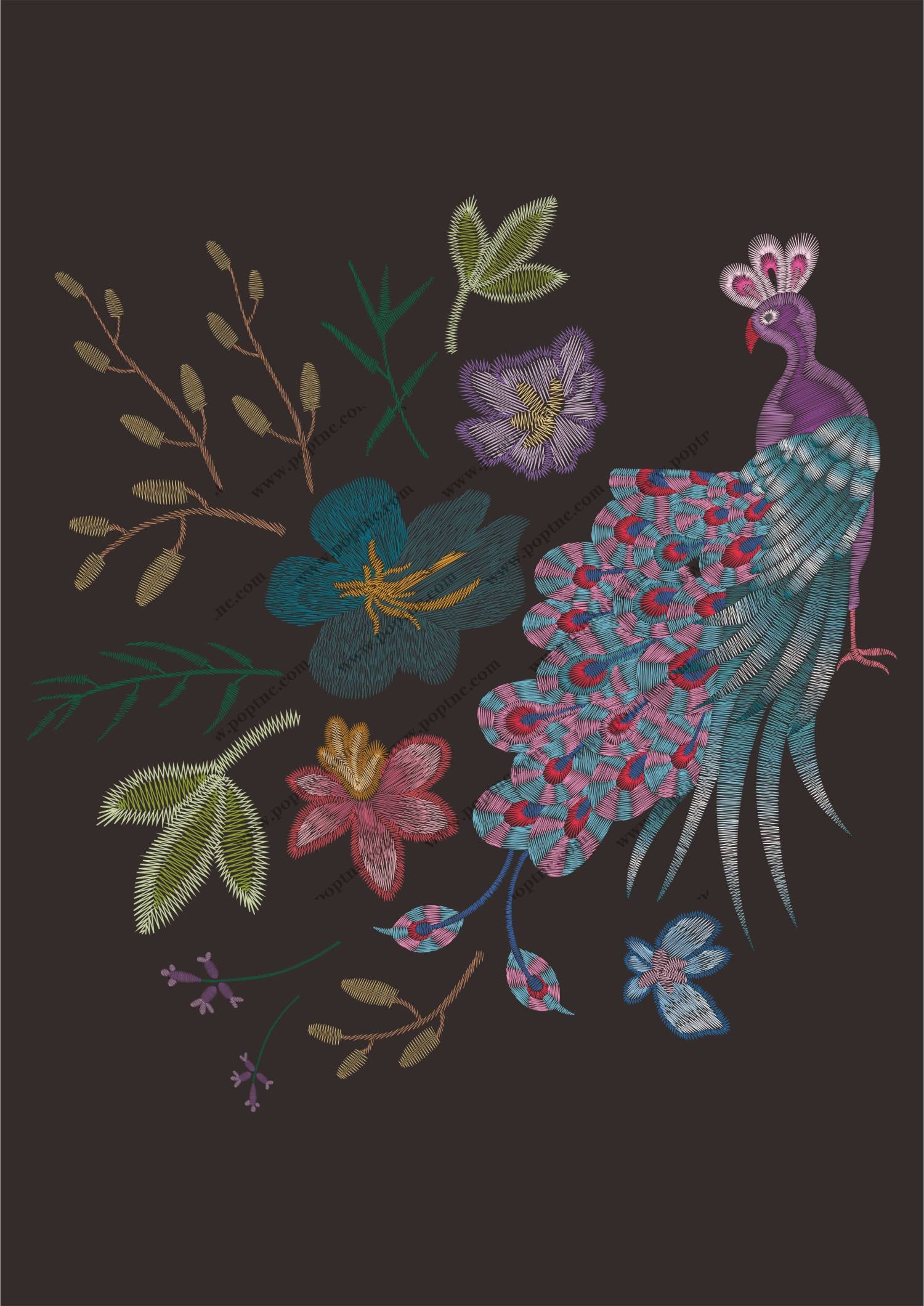 POP花型网 » 孔雀花朵服装纺织裁片烫图印花矢量图