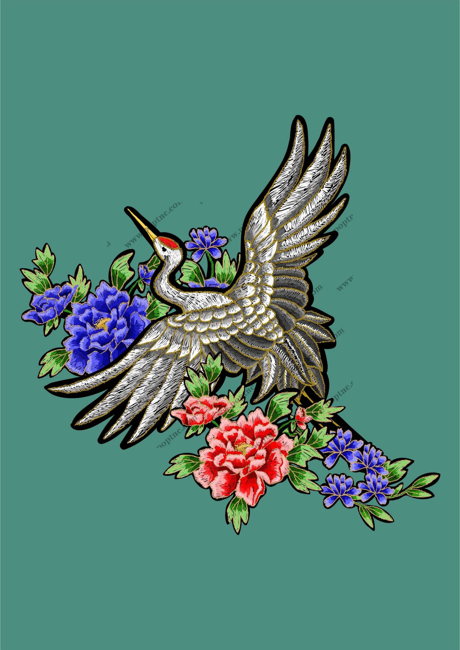 POP花型网 » 丹顶鹤牡丹花矢量图服装裁片烫图印花花型
