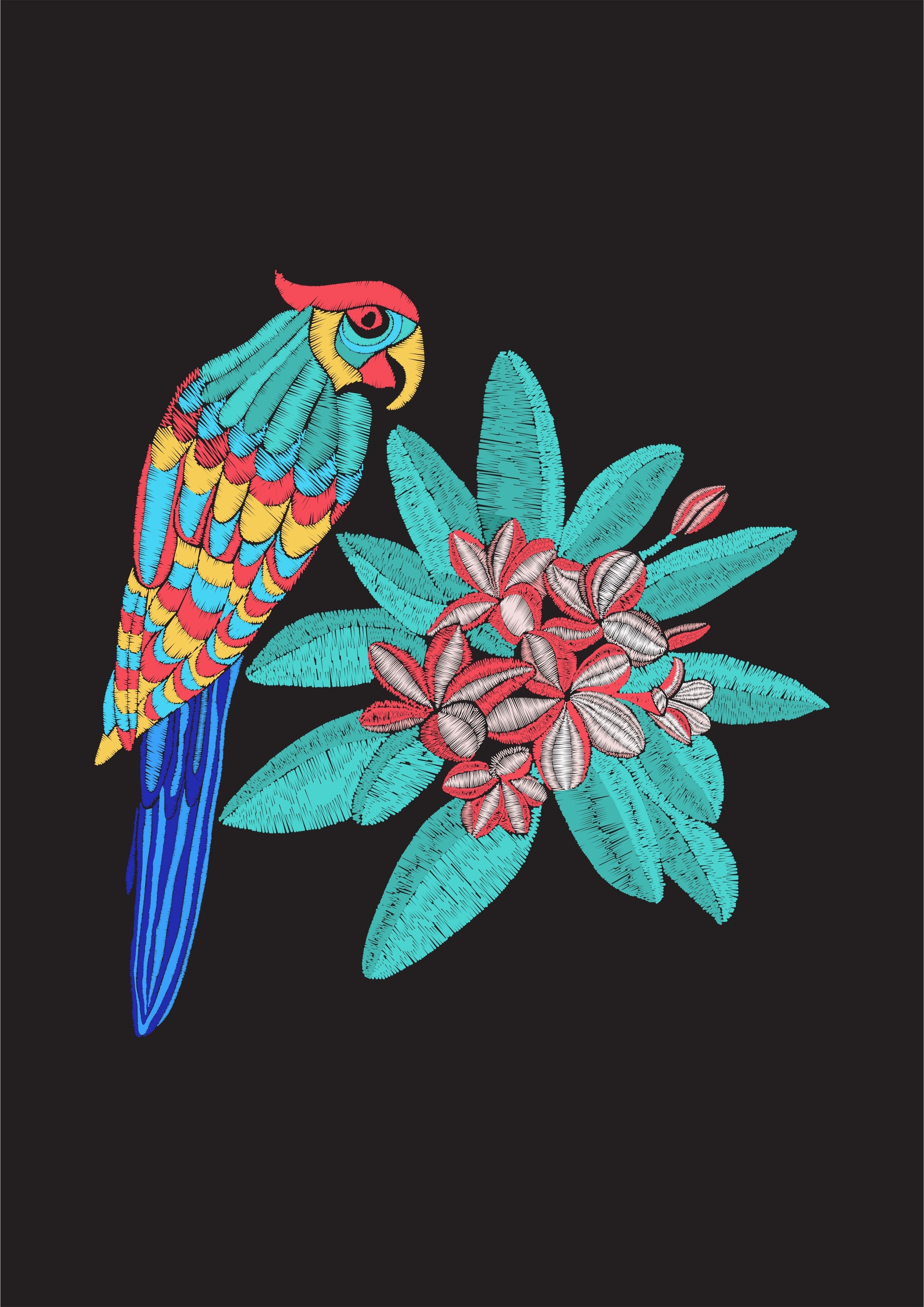 POP花型网 » 鹦鹉植物花朵矢量图服装裁片烫图印花花型