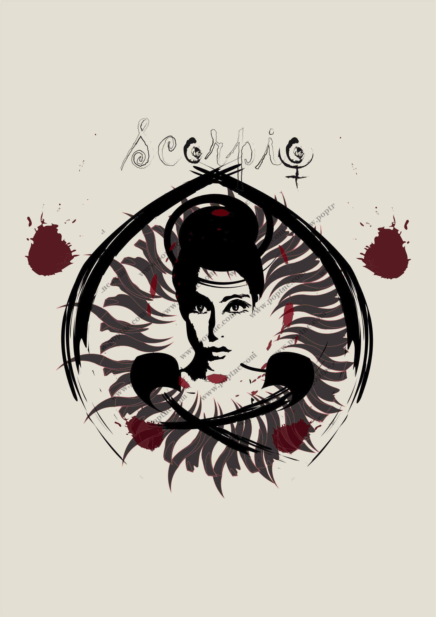 POP花型网 » 字母涂鸦女士人物矢量图服装裁片烫图印花花型