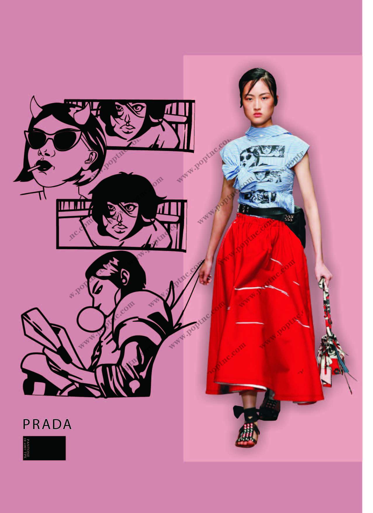 POP花型网 » PRADA卡通女士图案涂鸦矢量图服装裁片烫图印花花型
