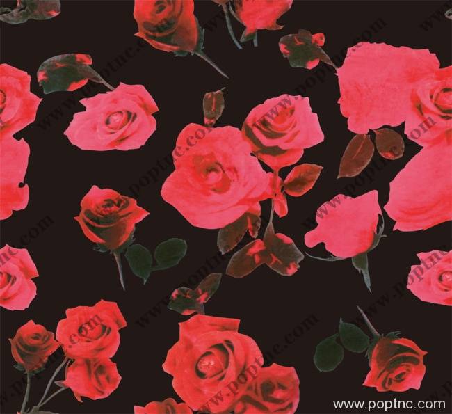 POP花型网 » 数码印花红花黑底四方连续可拼接回位纹理图