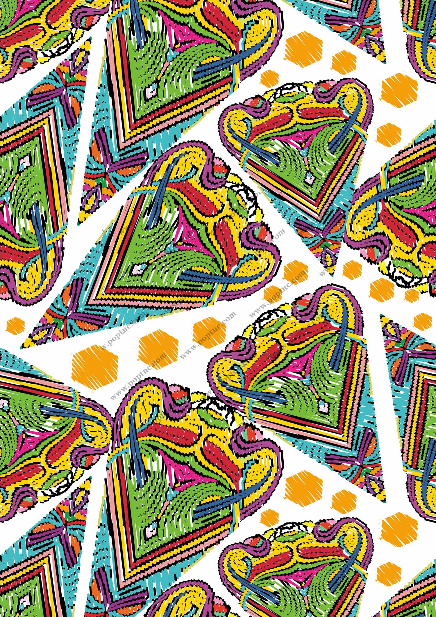 POP花型网 » 多彩几何抽象心形矢量图服装面料数码印花花型