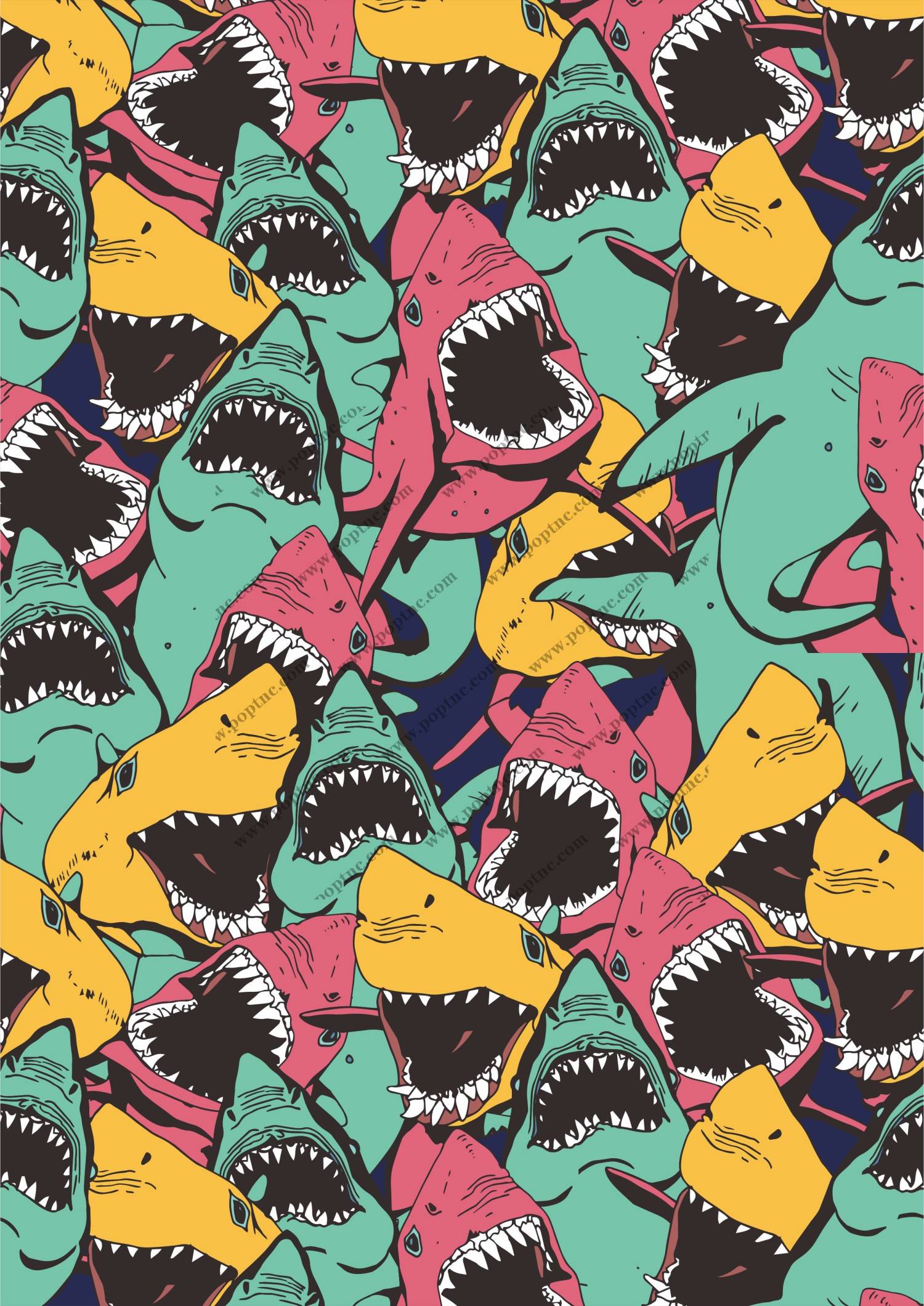 POP花型网 » 海洋动物鲨鱼矢量图服装面料数码印花花型