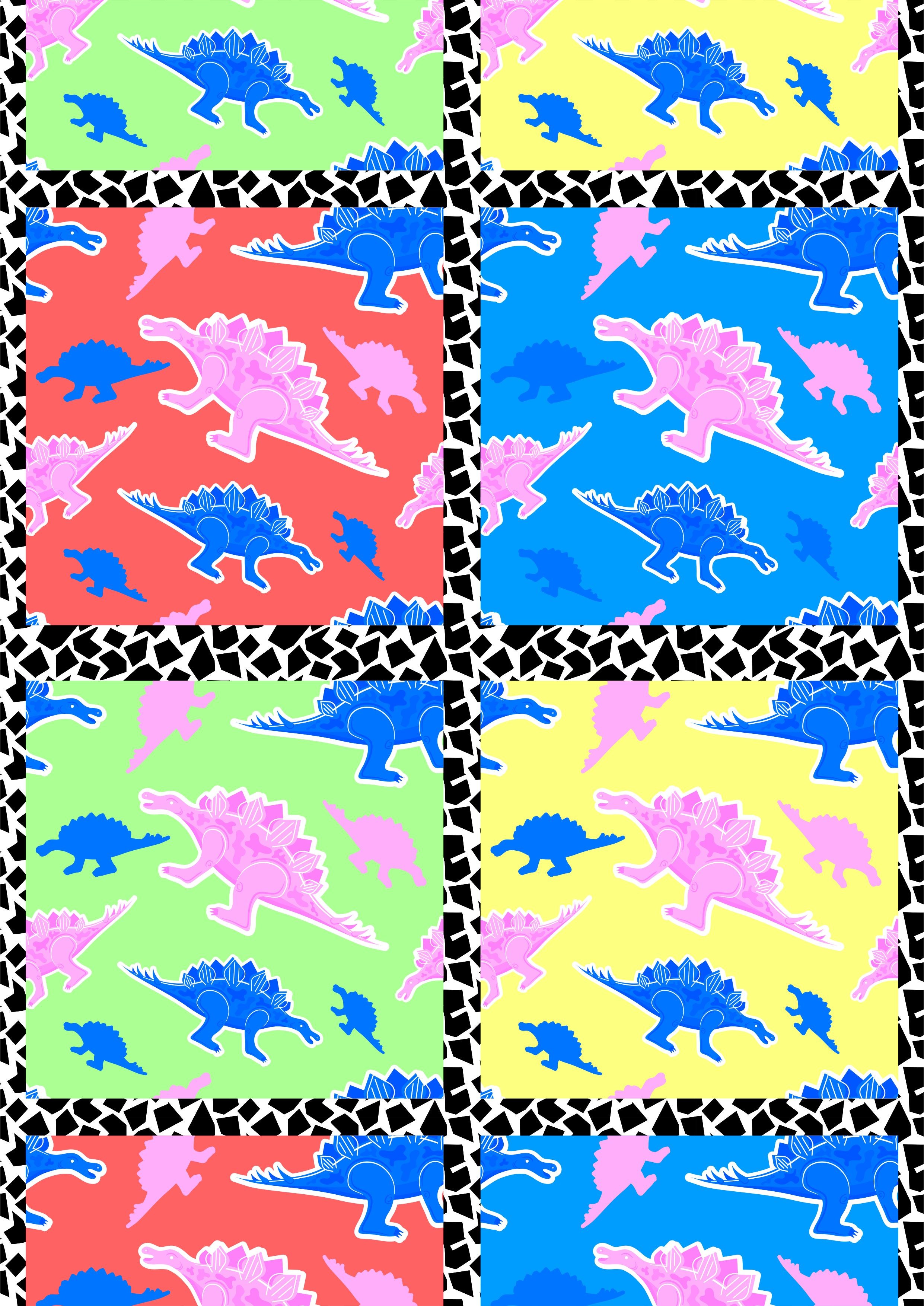 POP花型网 » 多彩卡通几何恐龙花型矢量图服装数码印花花型