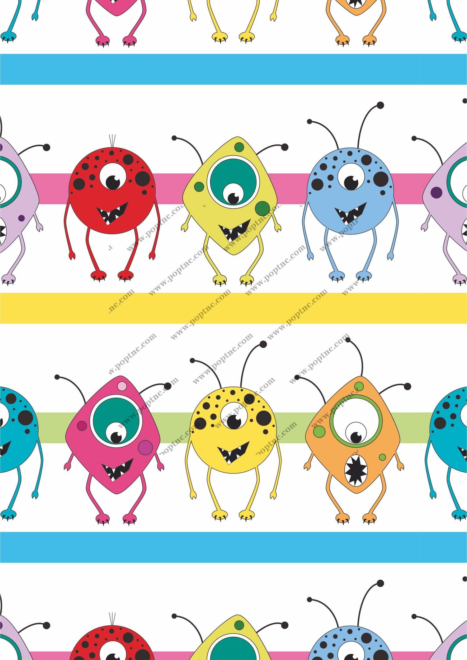 POP花型网 » 几何卡通线条怪兽小虫子矢量图服装面料数码印花花型