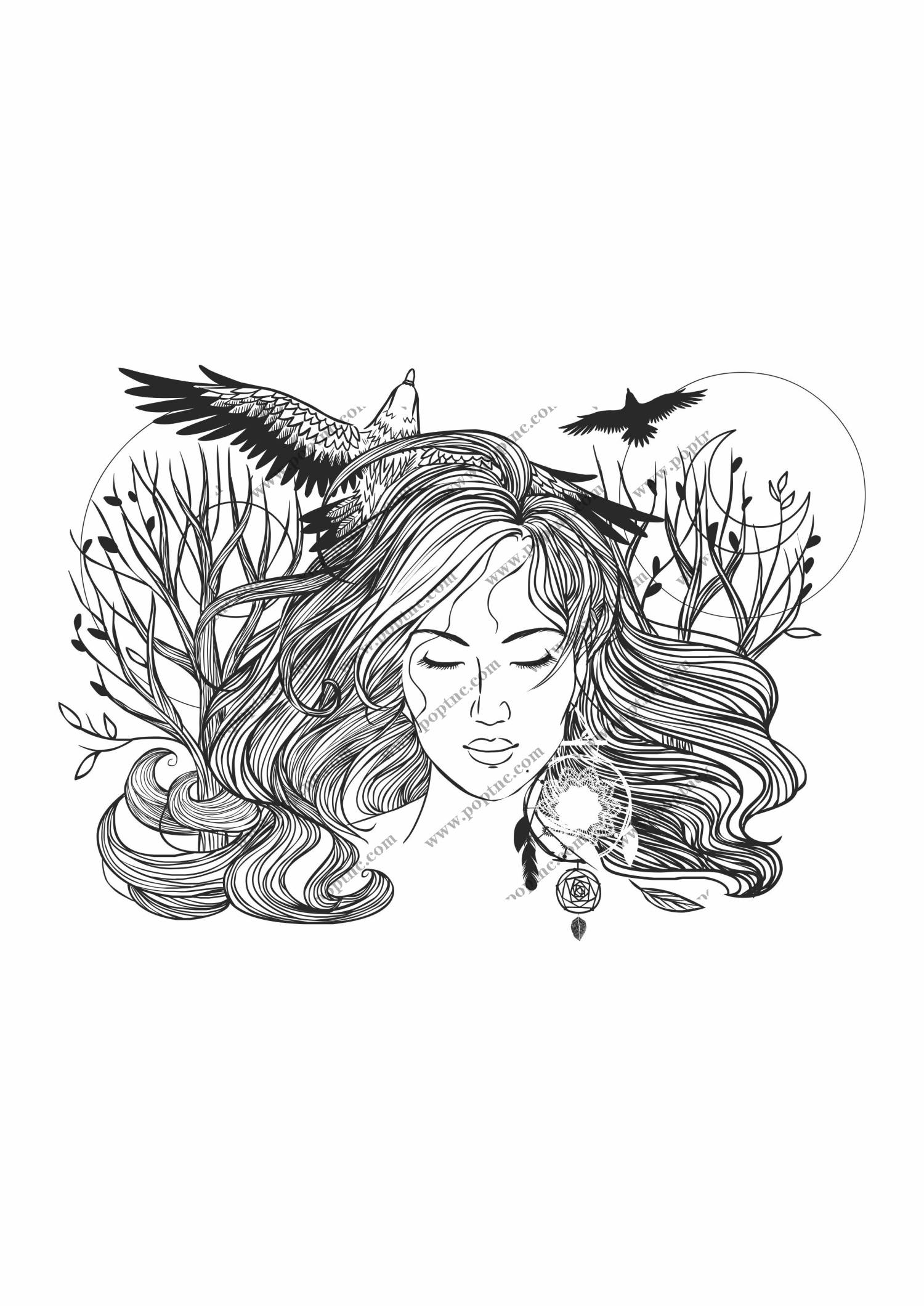 POP花型网 » 人物女士老鹰矢量图服装裁片T恤烫图花型素材