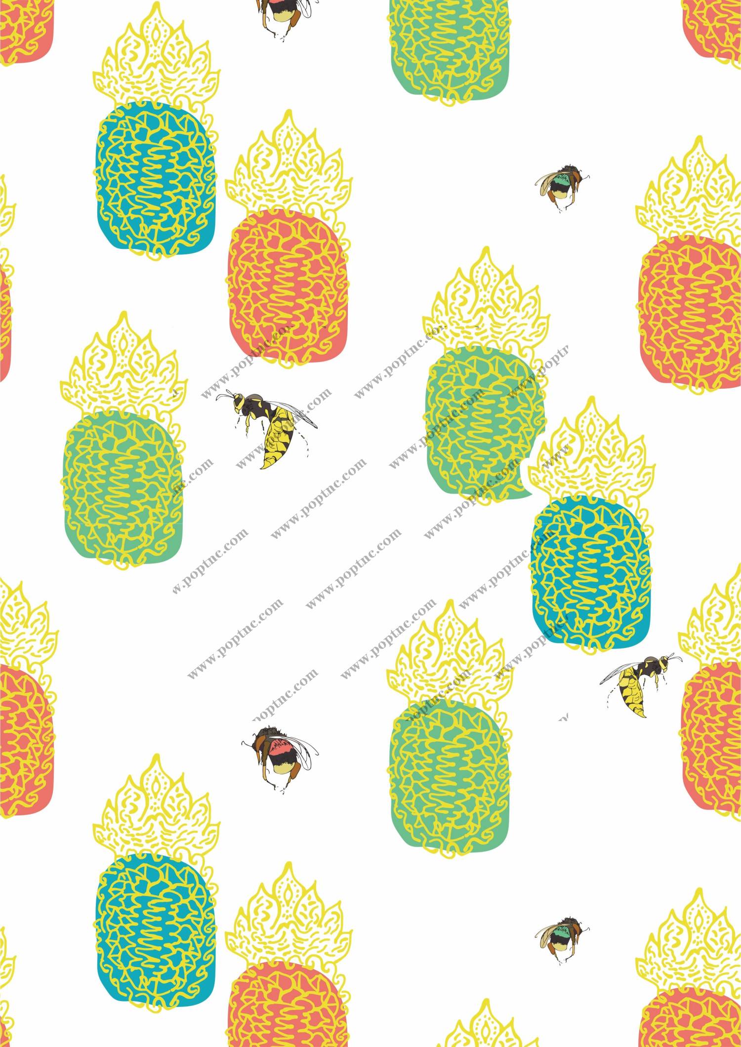 POP花型网 » 蜜蜂几何菠萝矢量图服装面料数码印花花型素材