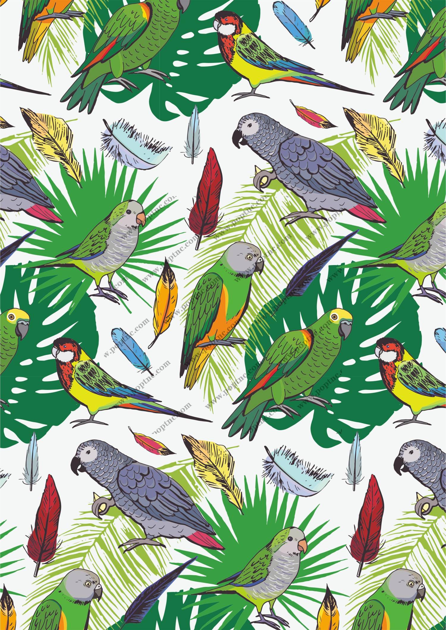 POP花型网 » 几何鹦鹉植物叶子矢量图热带风服装面料数码印花花型