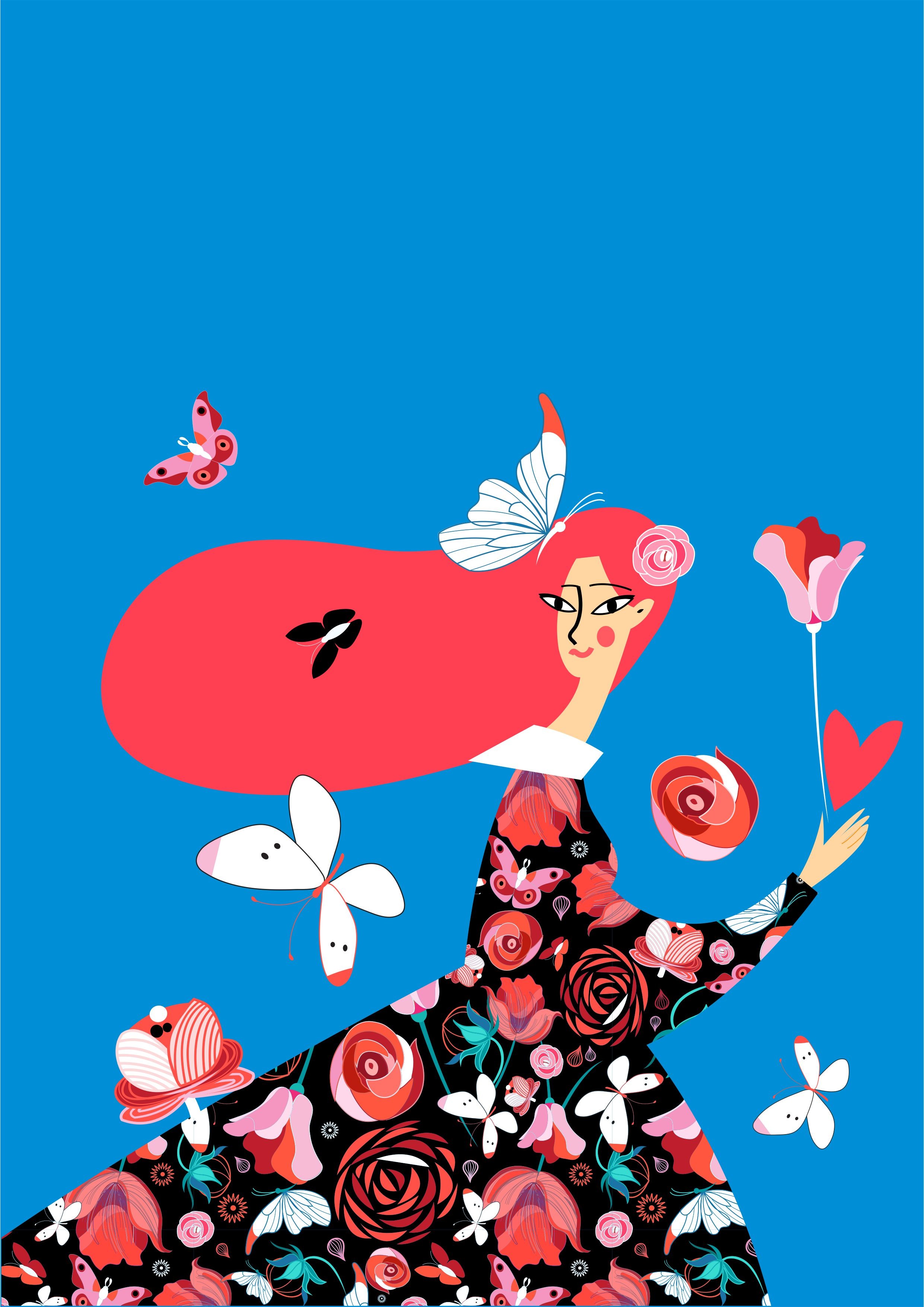 几何动漫人物花朵蝴蝶矢量图服装裁片T恤烫图素材