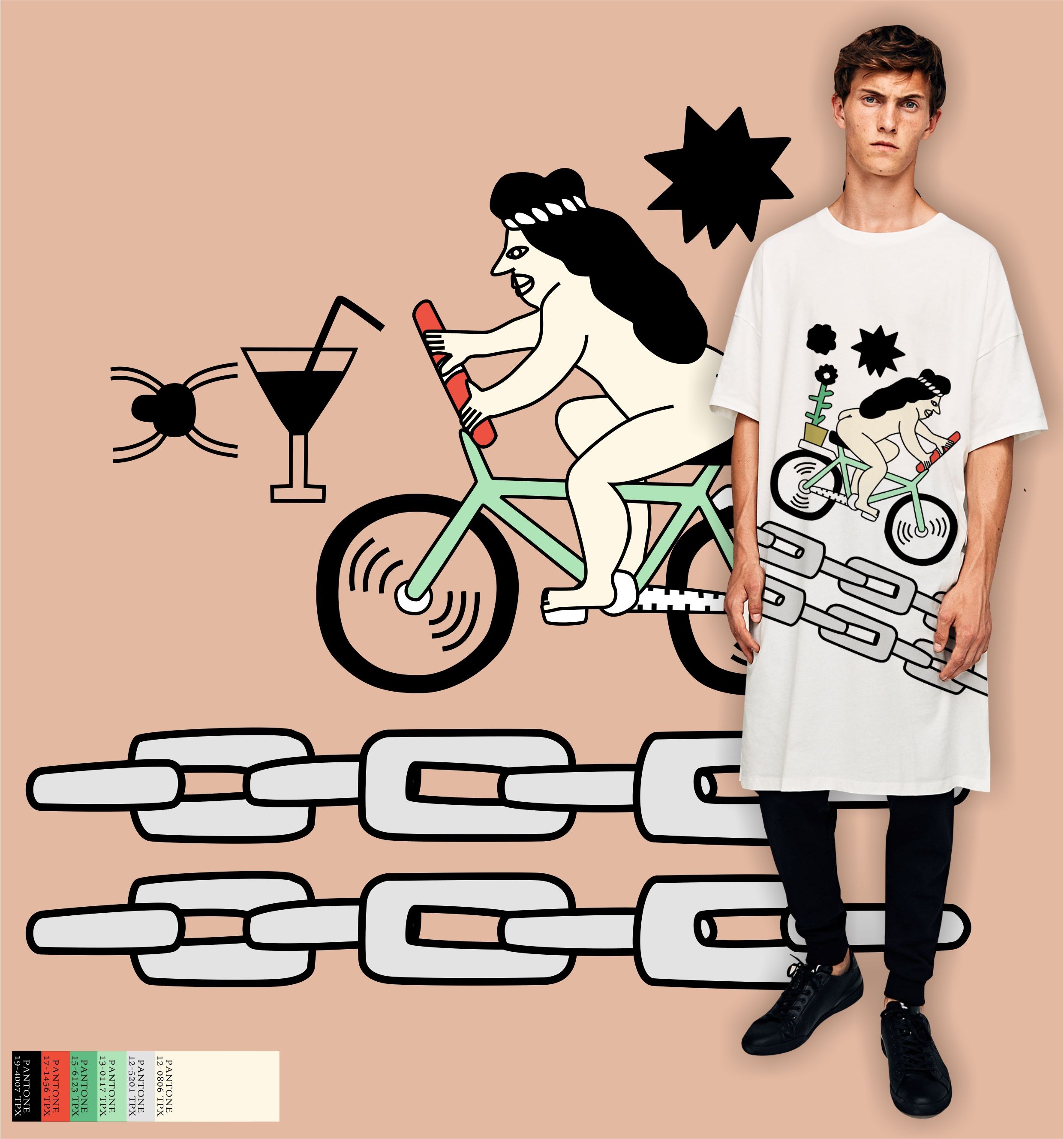 POP花型网 » 几何人物自行车链条矢量图服装T恤裁片烫图印花素材