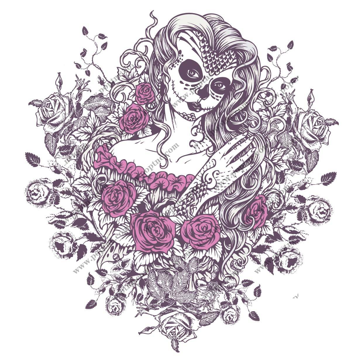 POP花型网 » 几何人物玫瑰花图案矢量图服装裁片T恤烫图印花花型素材
