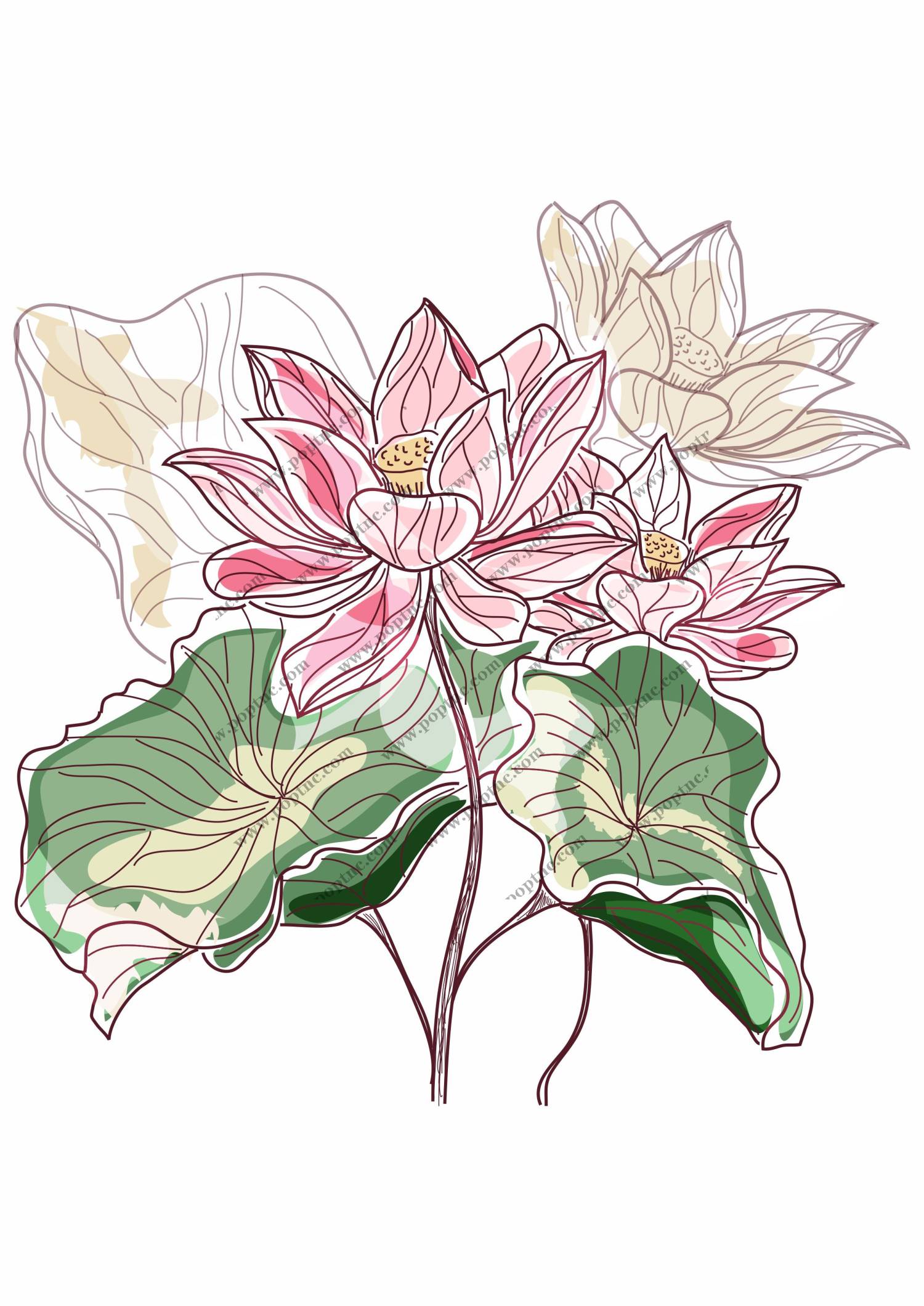 POP花型网 » 植物花卉荷叶矢量图服装裁片T恤烫图印花花型素材
