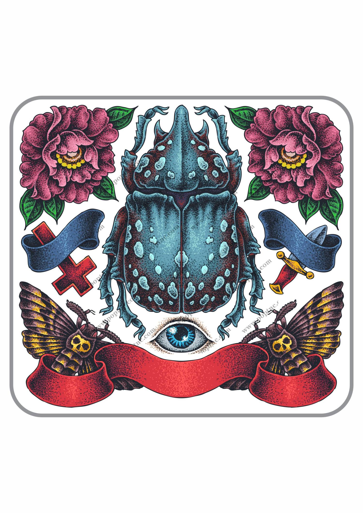 POP花型网 » 昆虫牡丹花矢量图服装裁片T恤烫图印花花型素材