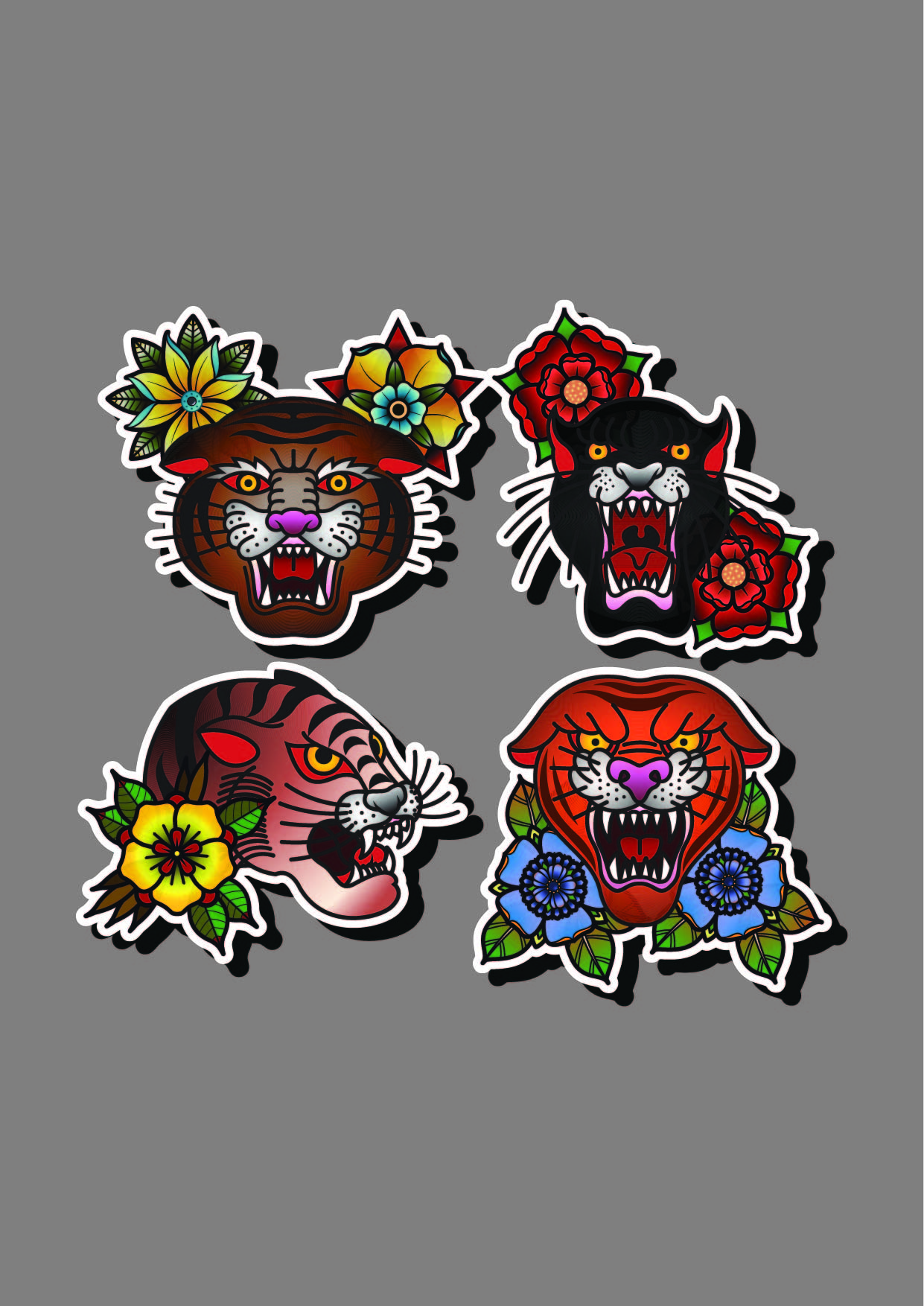 POP花型网 » 卡通老虎花朵矢量图服装裁片T恤烫图印花花型素材