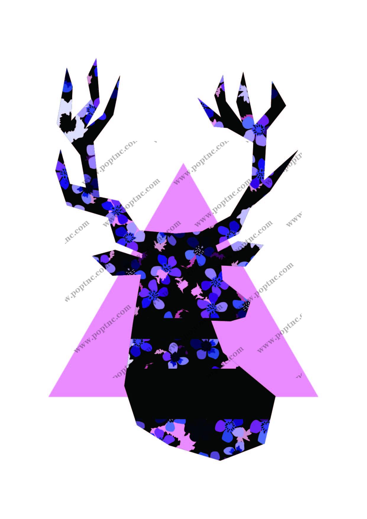 POP花型网 » 麋鹿花朵三角形矢量图服装裁片T恤烫图印花花型素材