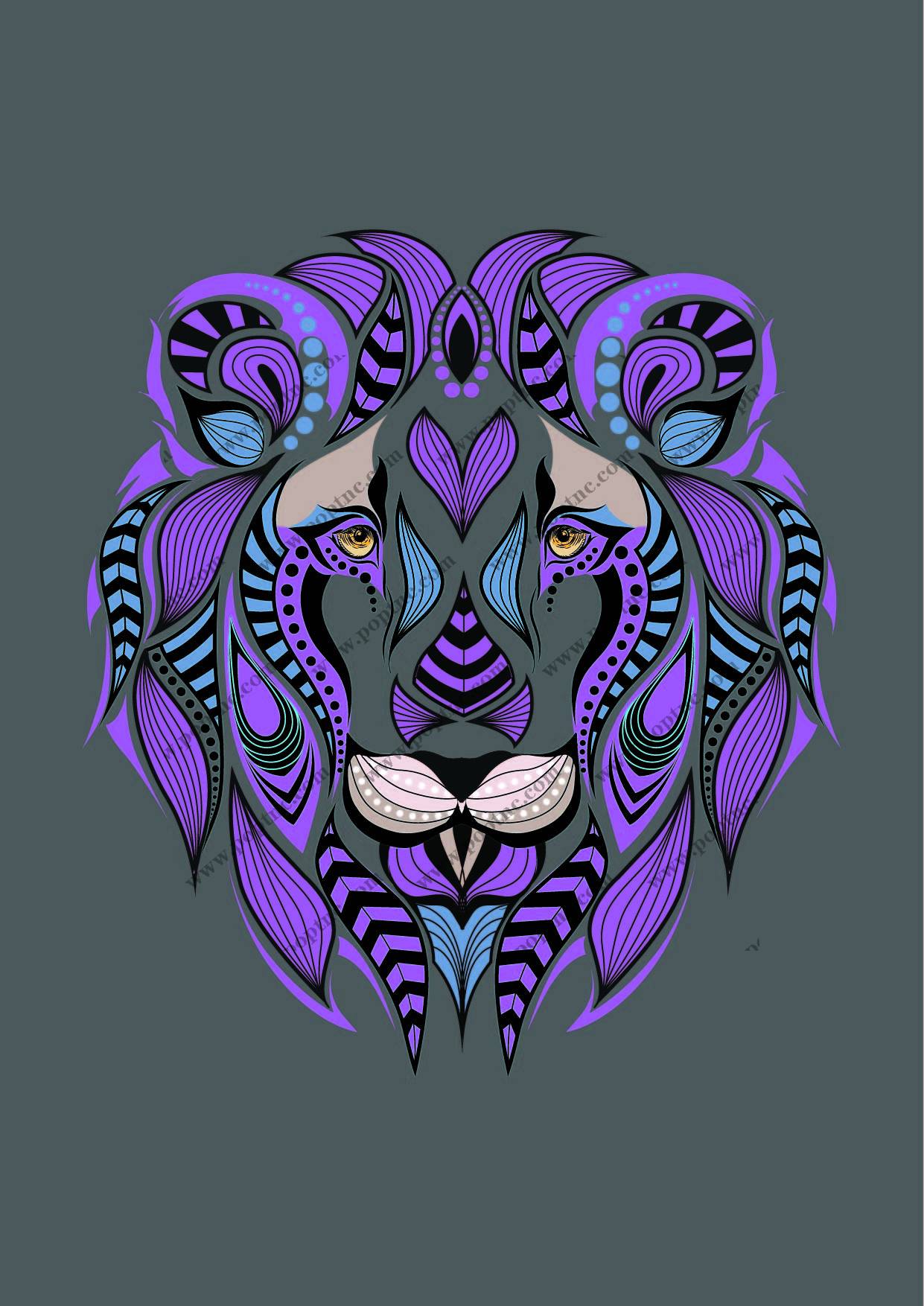 POP花型网 » 多彩几何图形拼接狮子头矢量图服装裁片T恤烫图印花花型素材