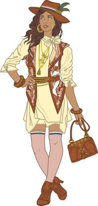 POP花型网 » 女士西部牛仔风服装设计手稿矢量图