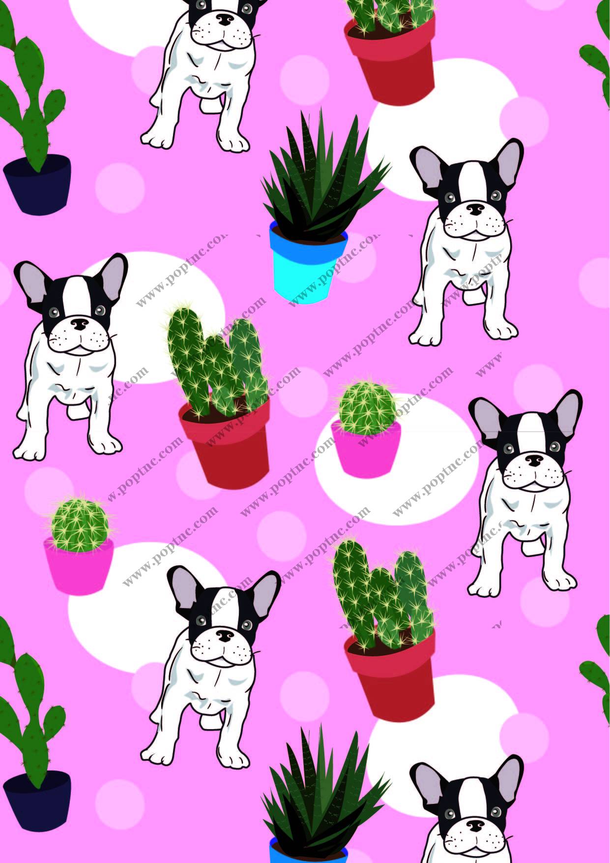 POP花型网 » 粉色卡通小狗仙人掌矢量图服装纺织面料数码印花花型素材