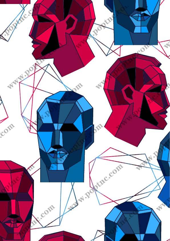POP花型网 » 几何拼接人物头像矢量图服装纺织面料数码印花花型素材