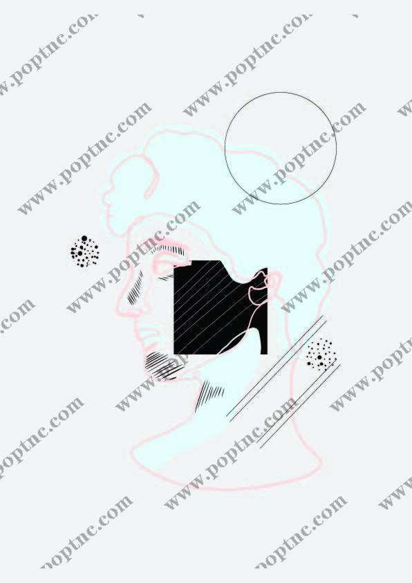 POP花型网 » 几何线条拼接人物头像花朵矢量图服装裁片T恤烫图印花花型素材