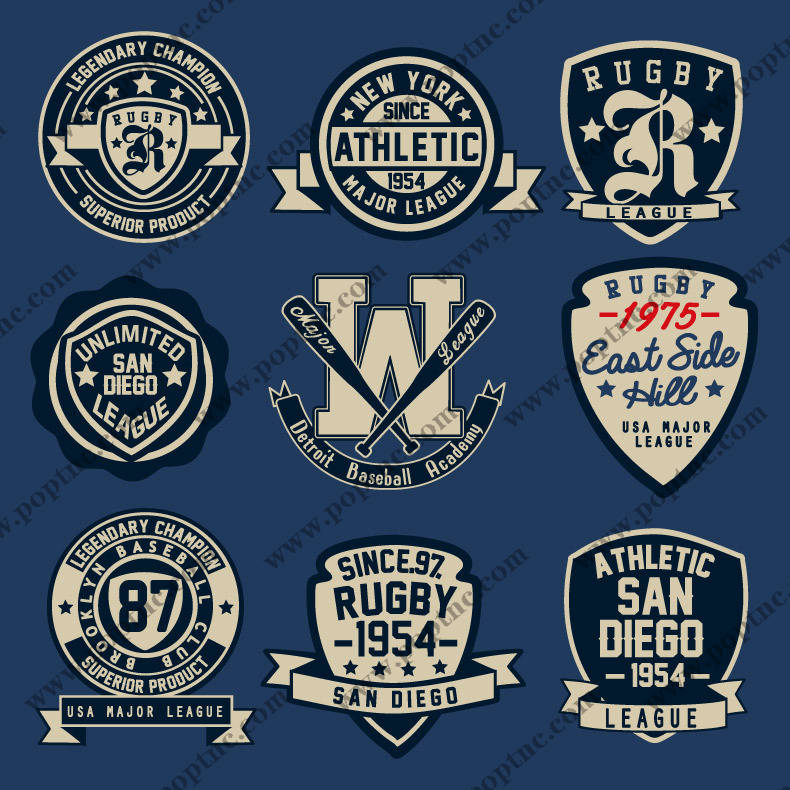 POP花型网 » 服装字母徽章矢量图服装印花设计素材