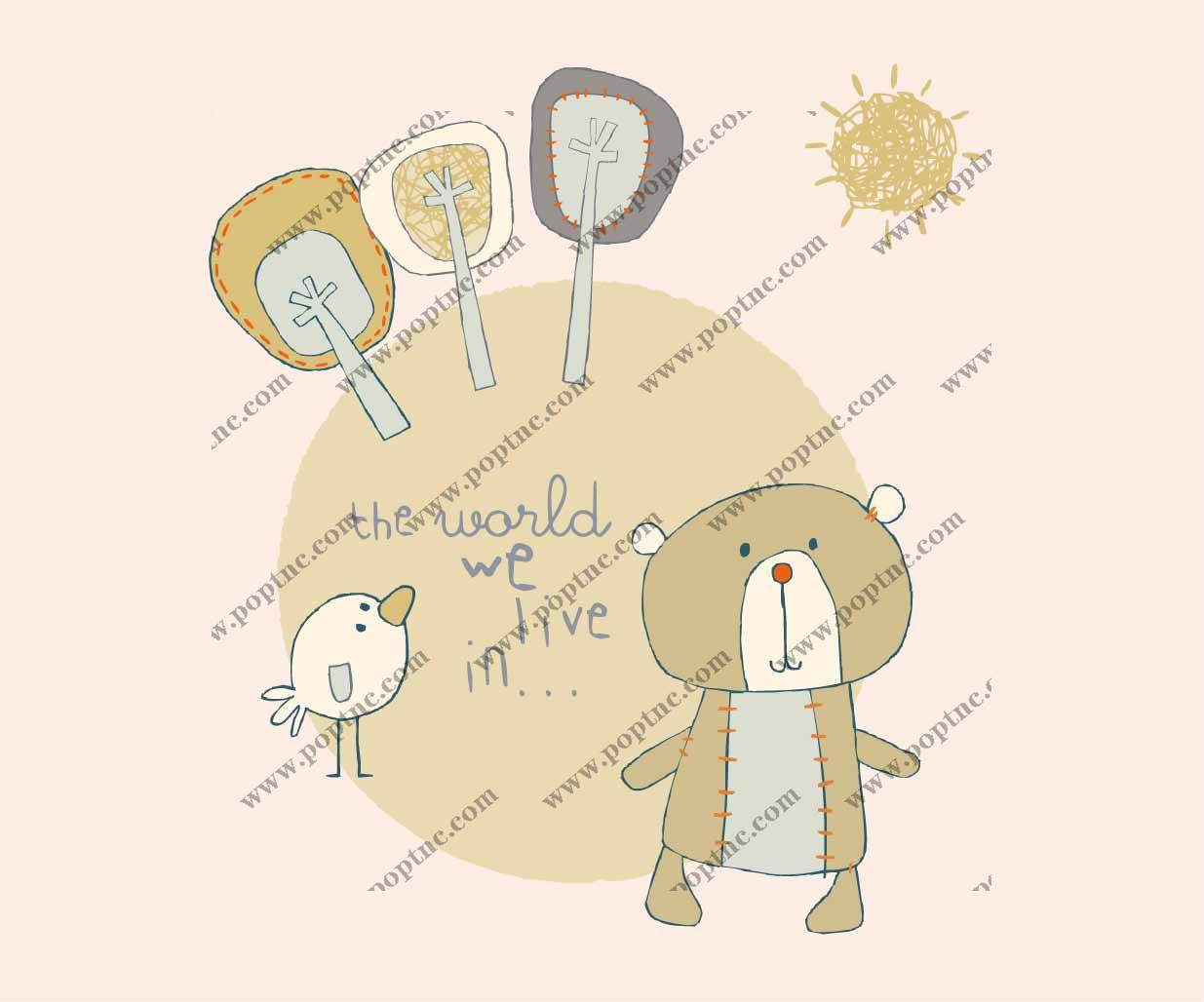 POP花型网 » 卡通小熊字母矢量图服装裁片T恤烫图印花花型素材