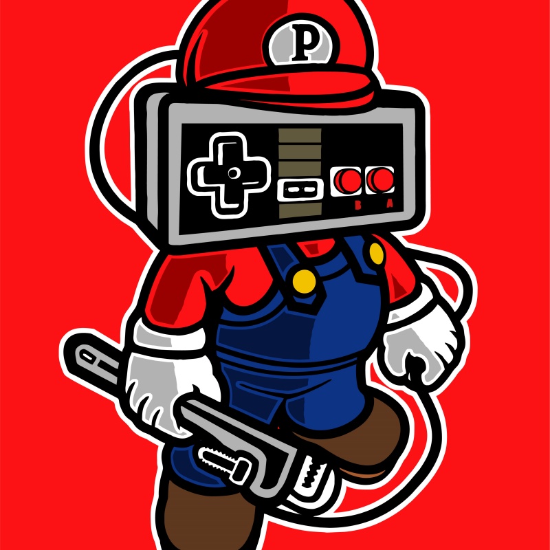 POP花型网 » 复古游戏机消防员主题服装印花设计