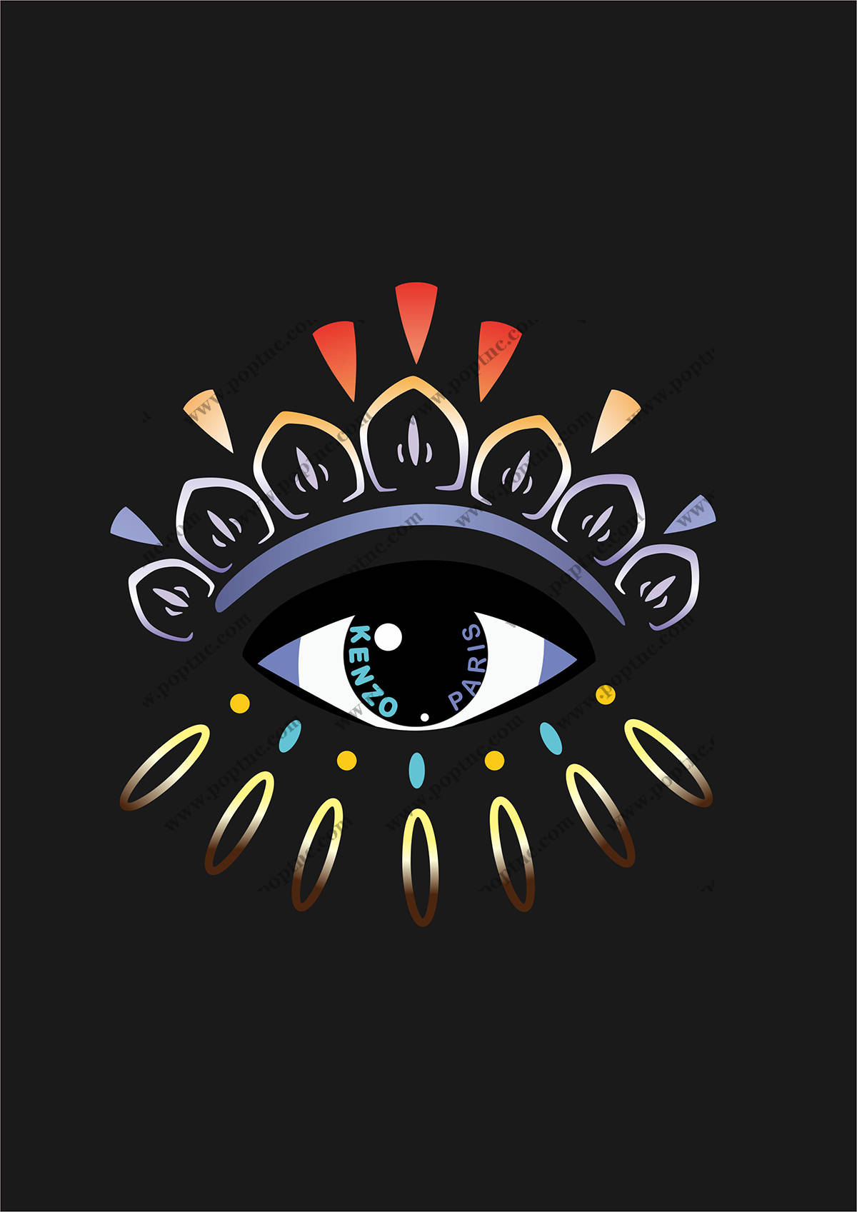 KENZO异域风情眼目矢量图服装裁片T恤烫图印花花型素材