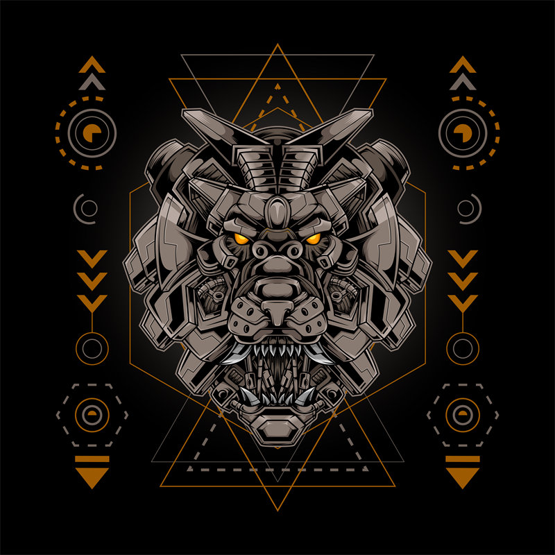 POP花型网 » 未来科技风格机械狼头裁片印花服装印花设计