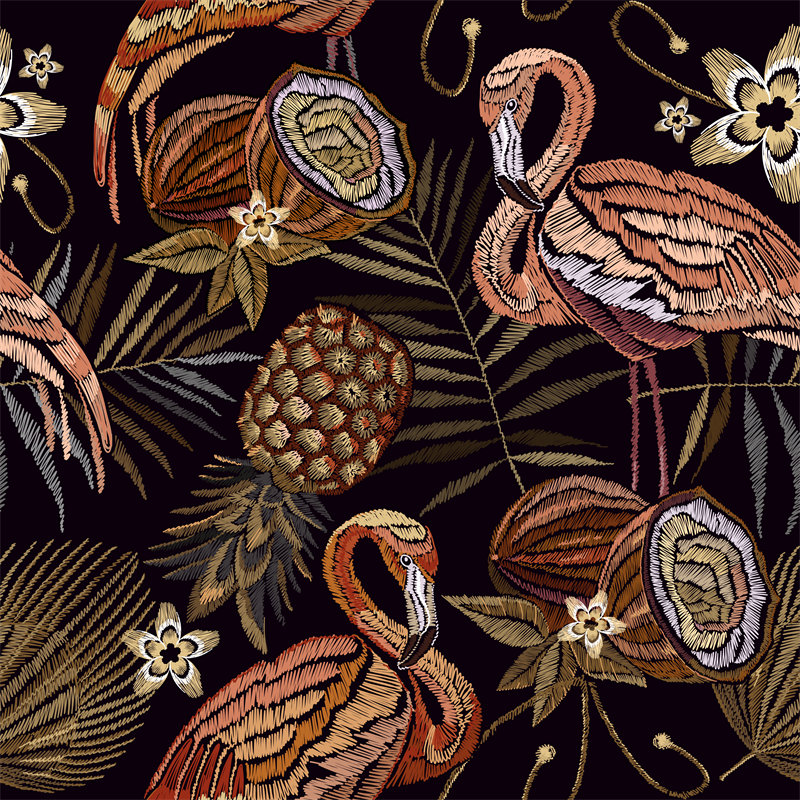 POP花型网 » 热带风情火烈鸟服装印花面料设计