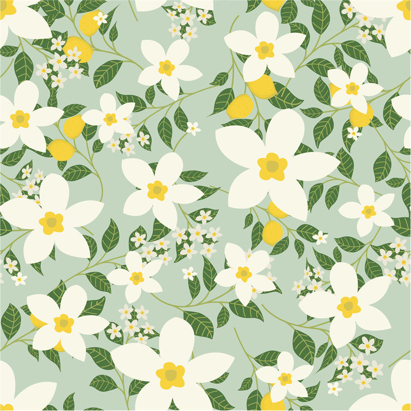 这款清新自然风的花卉面料印花,采用淡雅的绿色和白色为主色调,点缀以明亮的黄色花蕊,展现出春天的生机与活力。适用于春夏季节的服装印花,无论是连衣裙还是衬衫,都能增添一份自然清新的气息。