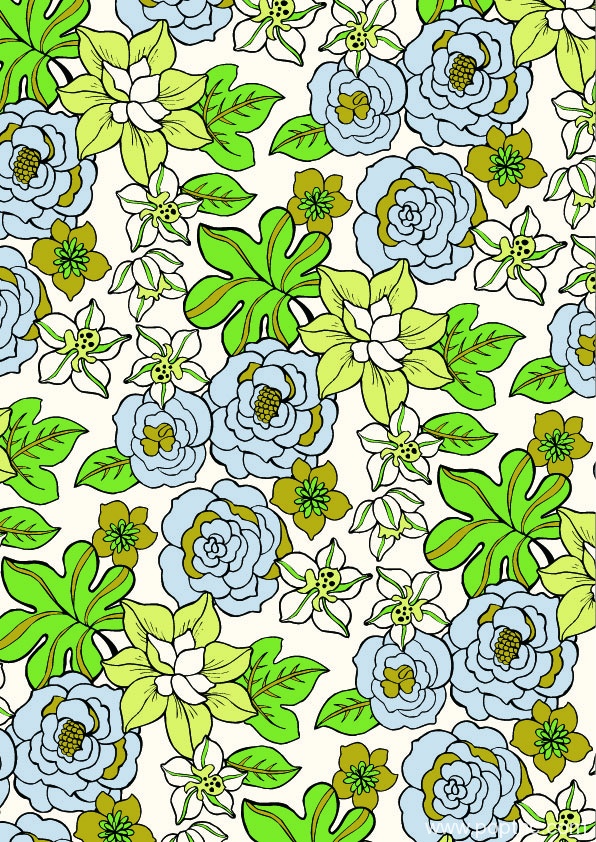 POP花型网 » 绿色植物花朵数码印花花型矢量图