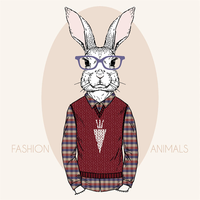 时尚动物裁片印花服装:兔子头图案的创意设计