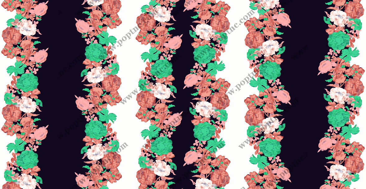 POP花型网 » 蓝白条子植物玫瑰花卉拼接矢量图服装纺织面料水印数码印花金昌花型素材
