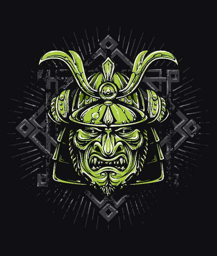 POP花型网 » 时尚街头风格裁片印花服装:绿色武士头盔图案