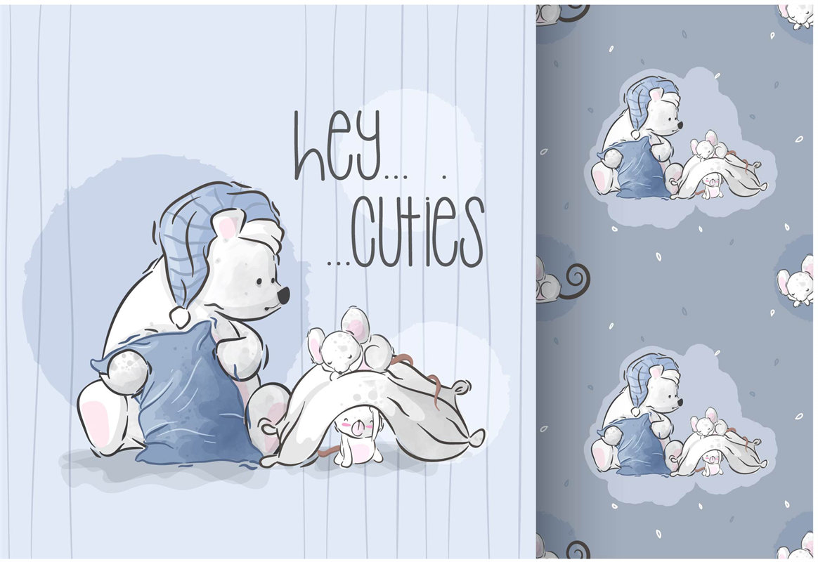 POP花型网 » 可爱北极熊裁片印花服装 温馨家庭风格设计