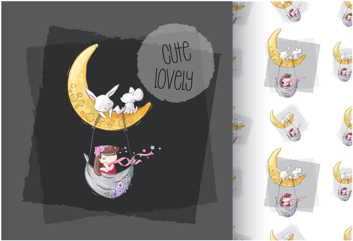 POP花型网 » 可爱梦幻月亮兔子裁片印花服装
