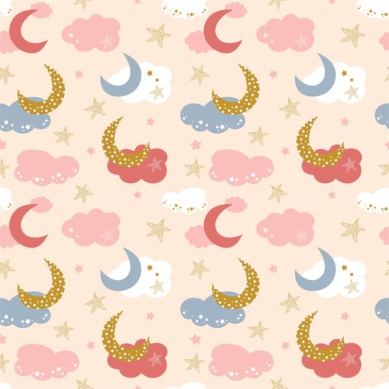 梦幻月亮星星云朵图案面料印花服装印花设计