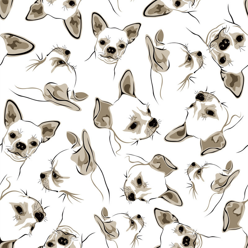 POP花型网 » 可爱吉娃娃犬图案面料印花,时尚宠物主题服装印花设计