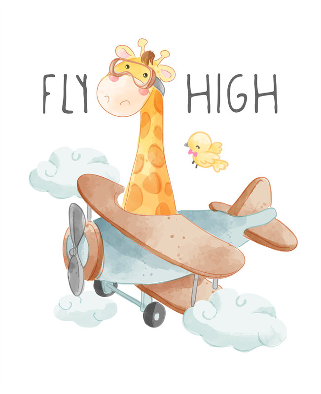 可爱卡通长颈鹿裁片印花服装,儿童飞机主题服装印花设计